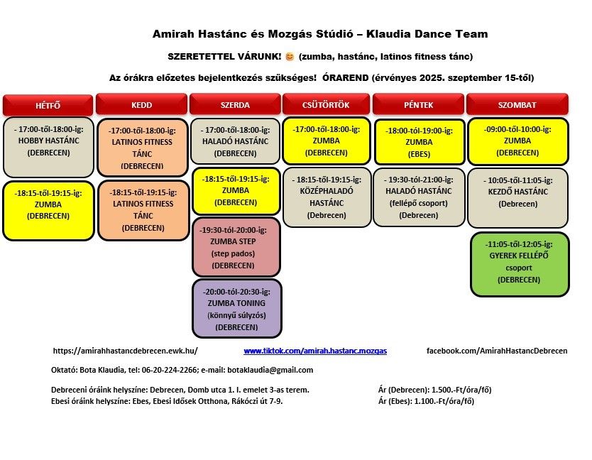 Oktató: Bota Klaudia, hastánc, fitness tánc, show tánc oktató, koreográfus, zumba instructor ZIN.